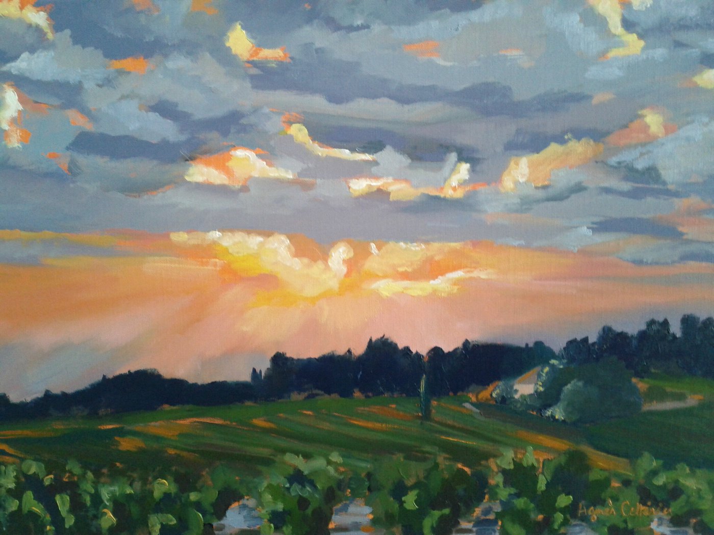 Précédent Retour à la galerie SuivantCoucher de soleil sur les vignesCoucher de soleil sur les vignes PartagerVenduTechniqueHuile sur toile de linPaysages Essayer chez moi ✎ ModifierŒuvres similairesAvril, fin de journéeHuile sur toile de lin — 40 × 40 cmChamp de bléHuile sur toile de lin — 54 × 73 cmContemplationHuile sur toile de lin — 38 × 55 cmDouceur matinaleHuile sur toile de lin — 38 × 55 cm